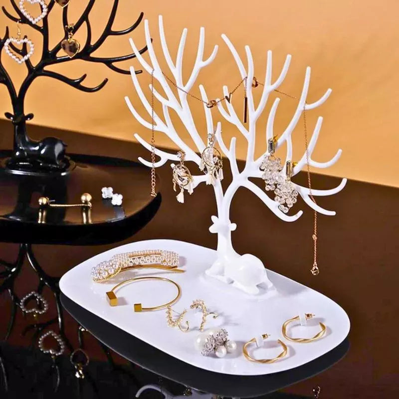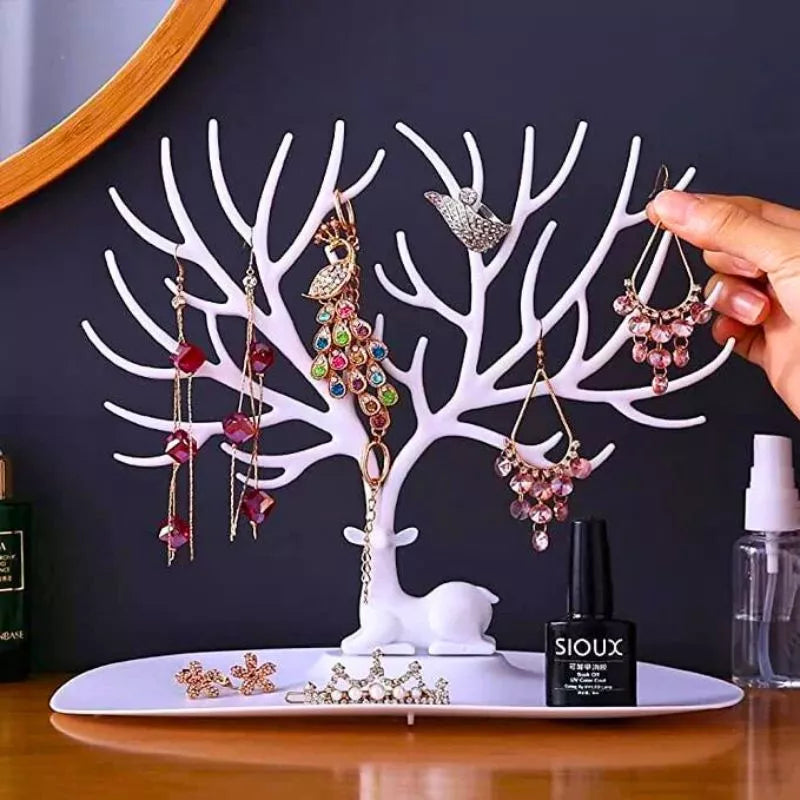 Zadbaj o swoje ulubione dodatki dzięki wyjątkowemu stojakowi na biżuterię w kształcie białej sarny. Ten elegancki i funkcjonalny organizer nie tylko chroni Twoje skarby, ale również pięknie je eksponuje, zamieniając każdy blat toaletki w małą galerię stylu.