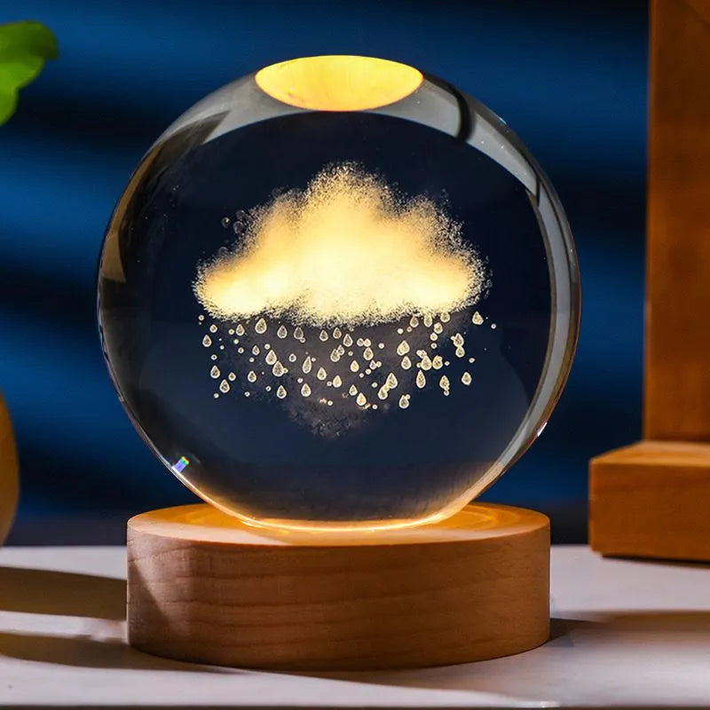 Szklana kula z chmurką to niezwykła dekoracja świetlna, która wnosi do wnętrza odrobinę natury i poezji. Wewnątrz kuli znajduje się precyzyjnie wygrawerowana chmurka z kroplami deszczu, tworząc nastrojowy i subtelny krajobraz zamknięty w kryształowym szkle.