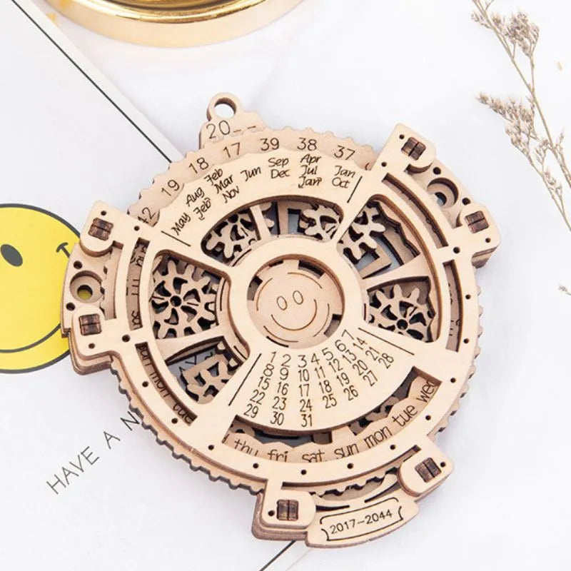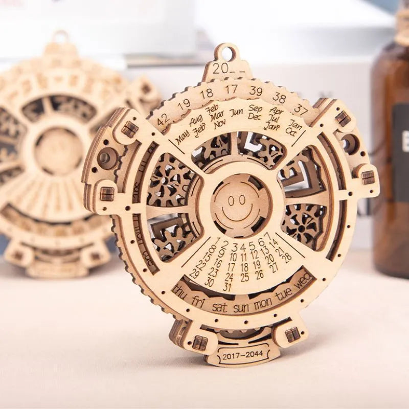 Odkryj mechanizm czasu z drewnianą układanką 3D Kalendarz! To dzieło pomysłowości i rzemiosła zachwyci Cię swoją złożonością i zabierze w podróż przez czas.