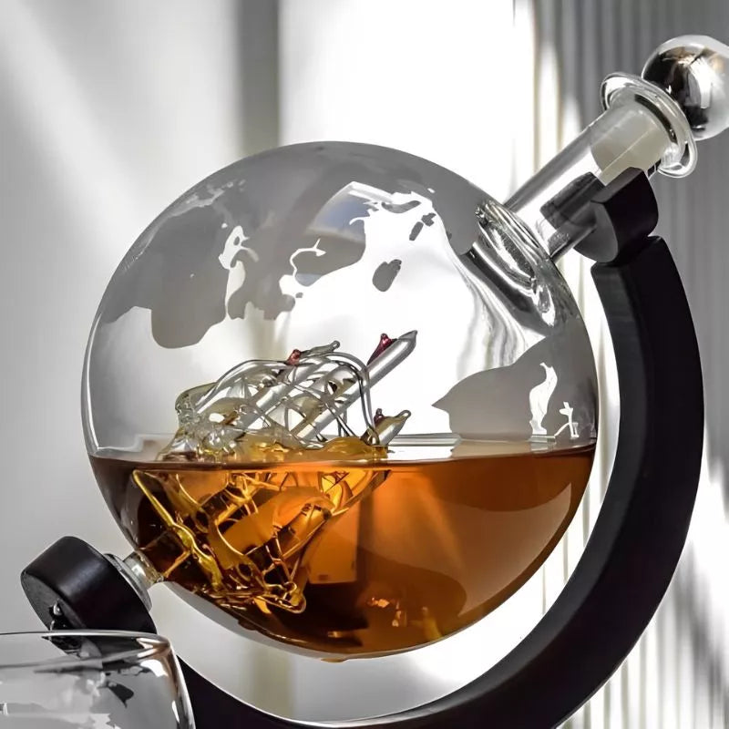 To nie tylko naczynie do serwowania alkoholu – to przedmiot, który mówi o osobowości właściciela. Karafka inspirowana globusem łączy w sobie motywy władzy, przygody i estetyki, tworząc prawdziwe dzieło sztuki użytkowej. W połączeniu z dwoma eleganckimi kieliszkami staje się niepowtarzalnym prezentem dla wyjątkowego mężczyzny.