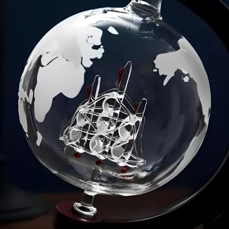 – Karafka w kształcie globusa z detalami inspirowanymi mapą świata