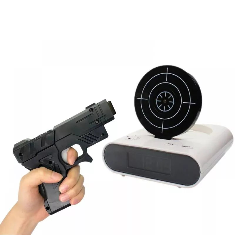 Zamiast klasycznego wyłączania alarmu, możesz zatrzymać dźwięk, strzelając do celu za pomocą dołączonego pistoletu z czujnikiem podczerwieni. Urządzenie oferuje dwa tryby gry, które sprawiają, że codzienne wstawanie staje się przygodą. Możliwość personalizacji dźwięku alarmu pozwala dopasować budzik do własnych preferencji, a cyfrowy wyświetlacz zapewnia łatwy odczyt godziny.