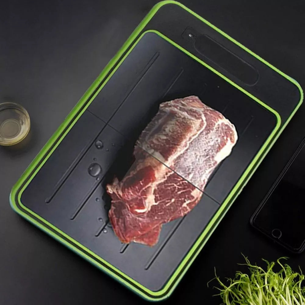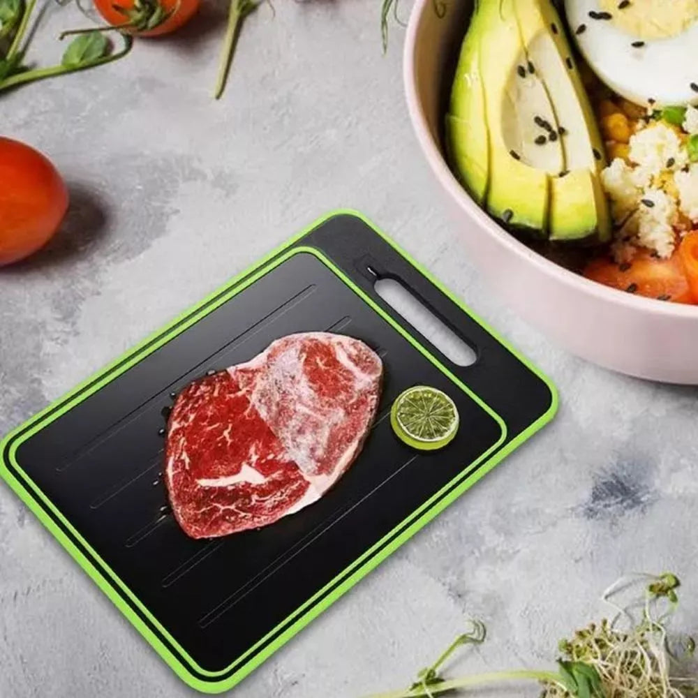 To niezastapione narzedzie, o ktorym marza wszystkie gospodynie domowe i profesjonalni kucharze. Dzieki swojej specjalnej powierzchni wykonanej z plastiku i aluminium, deska przyspiesza proces rozmrazania miesa, warzyw i wielu innych skladnikow – bez potrzeby mikrofalowki czy wody. Po prostu poloz jedzenie na desce i obserwuj, jak szybko osiaga temperature idealna do dalszej obrobki.