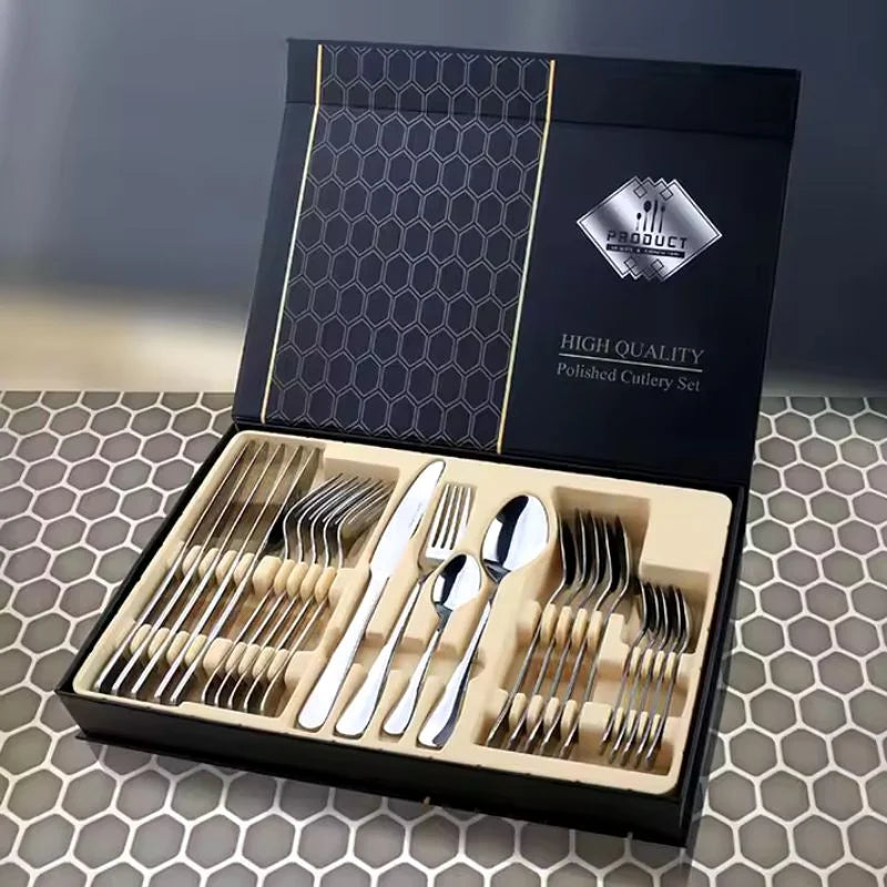 Elegancja i trwalosc spotykaja sie w tym stylowym zestawie sztuccow, idealnym na wyjatkowe okazje i codzienne posilki.