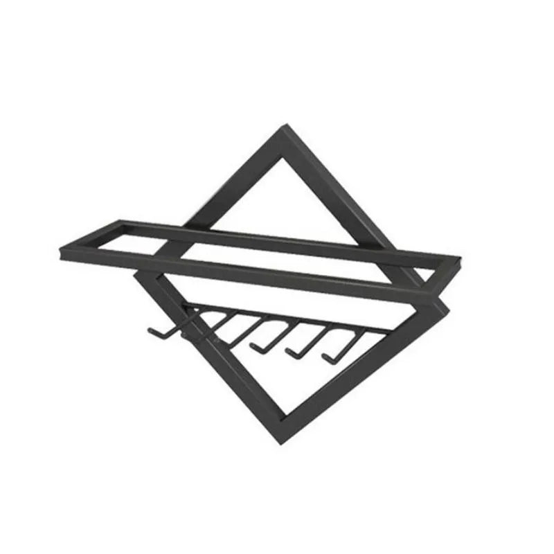 Ten uchwyt ścienny na butelkę i kieliszki do wina wykonany jest z wytrzymałego metalu i ma nowoczesny design w formie dwóch nachodzących na siebie trójkątów, które nadają każdej ścianie interesujący, geometryczny wygląd. Uchwyt jest idealny do efektywnego przechowywania jednej butelki wina i czterech kieliszków, oszczędzając miejsce i dodając wyjątkowy akcent dekoracyjny. Kompaktowe wymiary 26,5 cm x 25 cm i głębokość 10 cm sprawiają, że łatwo go zintegrować w kuchni, salonie lub w każdej innej przestrzeni przeznaczonej na relaks i spotkania towarzyskie.