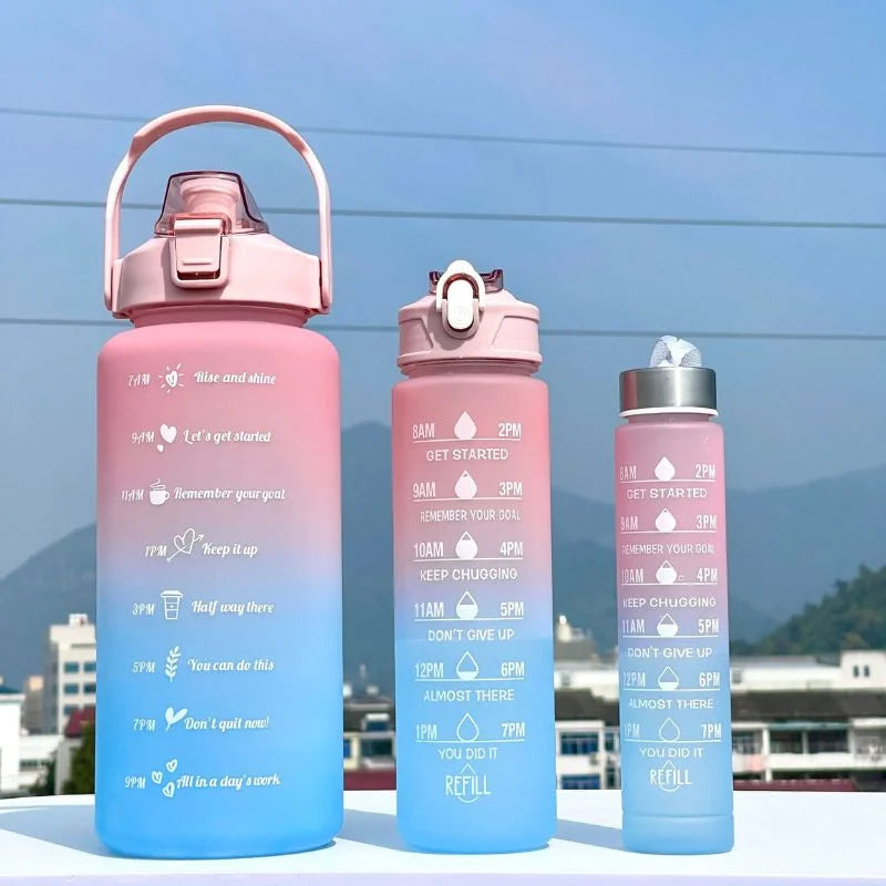 Zestaw 3 butelki na wode sportowe z napisami motywacyjnymi