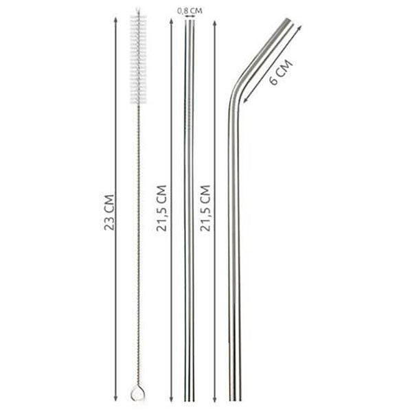 Zestaw 8 wielorazowych słomek ze stali nierdzewnej